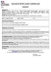 La Préfecture annonce une alerte aux orages du vendredi 19 au samedi 20 septembre 👉 Prudence lors de vos déplacements.👉 Évitez les zones boisées, les bords de cours d’eau et les activités extérieures exposées.👉 Rangez ou sécurisez vos objets sensibles au vent. ⚠️ Restons vigilants pour notre sécurité et celle de tous.