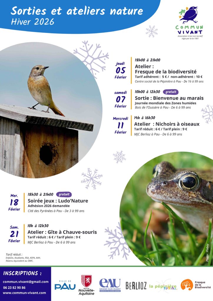 Programme d’hiver 2026 – Ateliers et sorties nature – Association commune vivant.