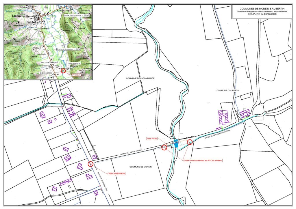 La coupure d’eau pour le raccordement de l’encorbellement renouvelé est programmée le jeudi 5 février 2026 à partir de 08h30.