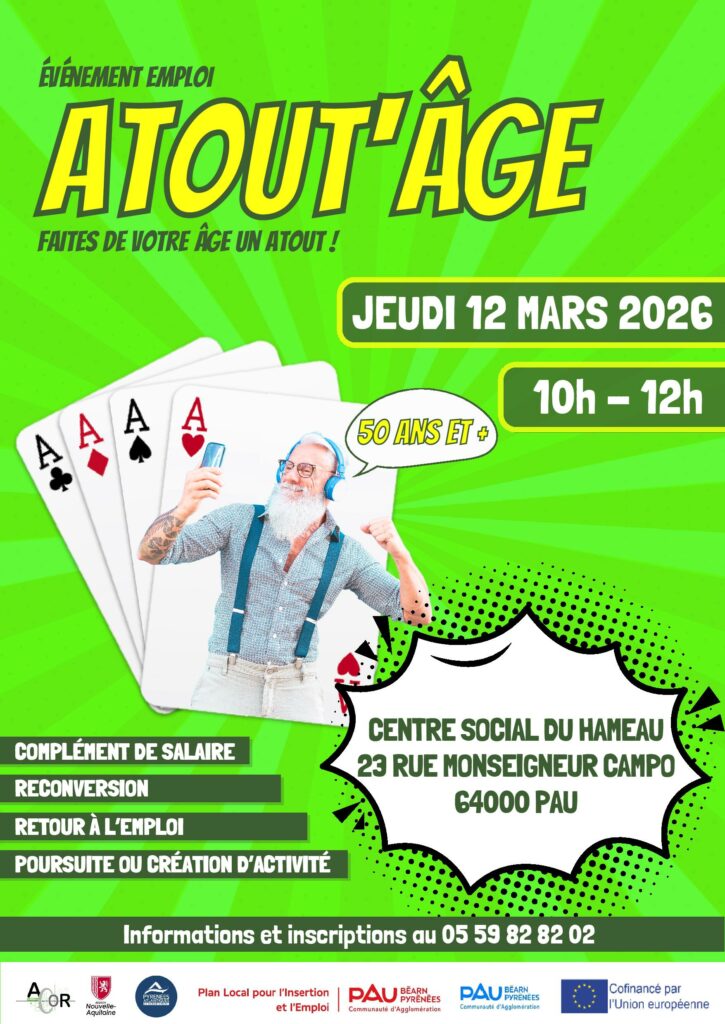 Dans le cadre du dispositif Emploi Atout’Age, la Communauté d’Agglomération Pau Béarn Pyrénées et A.CO.R organisent un évènement Emploi spécialement dédié aux seniors.